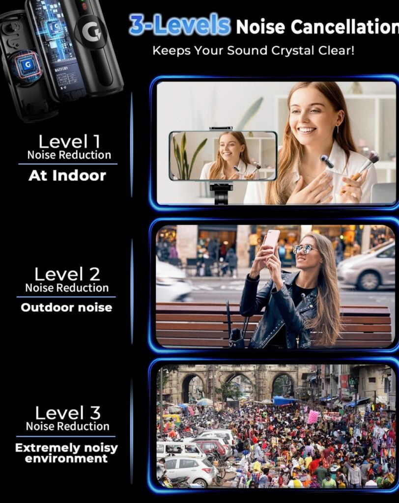 Isme 3 Noise cancellation mic ke back jo side me jo ache se work karta hai but meri salah ye hai ke ap 1 leble ya 2 leble Jiyada use kare 3 leble me Iyada sond ko distrap karne lagta hai aise is Range bhut behtreen mic hai beginner ke liye